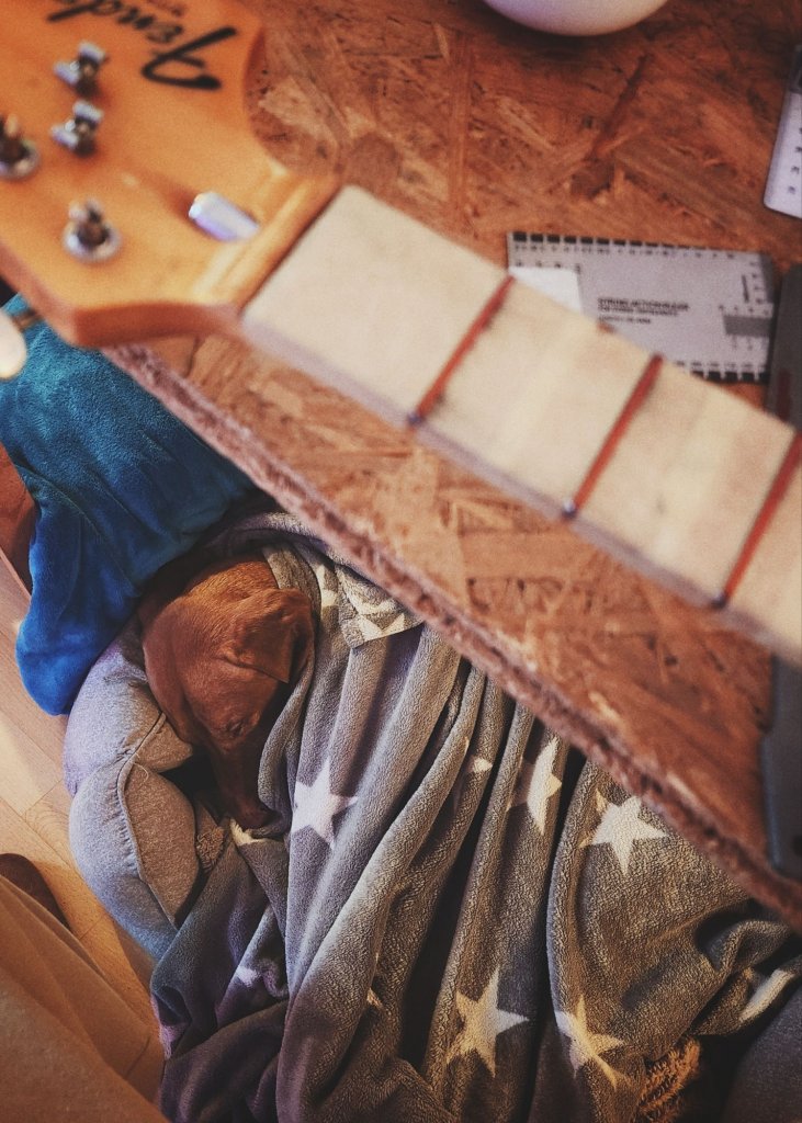 Das Setup an einer meiner Gitarren selbst durchzuführen, entspannt mich nach wie vor. Ich hab noch in Essen gewohnt (Katernberg, um genau zu sein. Essener Norden. Rock’n Roll), als ich für meinen guten Freund Christoph (†) eine alte Fender Akustikgitarre bearbeitet habe. Das war ein Wahnsinnsprivileg für mich. Interessanterweise habe ich weder Blut noch Wasser geschwitzt. Ich hab’s einfach gemacht. Keine Ahnung, warum ich da noch nie diese Angst hatte, etwas kaputt zu machen. Obwohl ich damals noch gar keine Ahnung und wenig Erfahrung darin hatte. Ich kannte nur die Artikel der Magazine, die ich regelmäßig las und die Gespräche mit anderen Musikern. Ansonsten hab ich einfach gemacht und ja: es ging auch schon mal ganz gut daneben. Zum Glück an einer eigenen Gitarre.