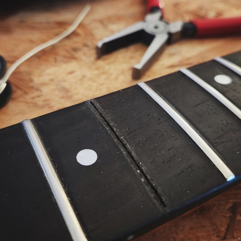 Die Strat hat jetzt jedenfalls Edelstahlbünde und spielt sich fast wie Butter. Die ganze Arbeit hat mich allerdings 5 Stunden Arbeit gekostet.
